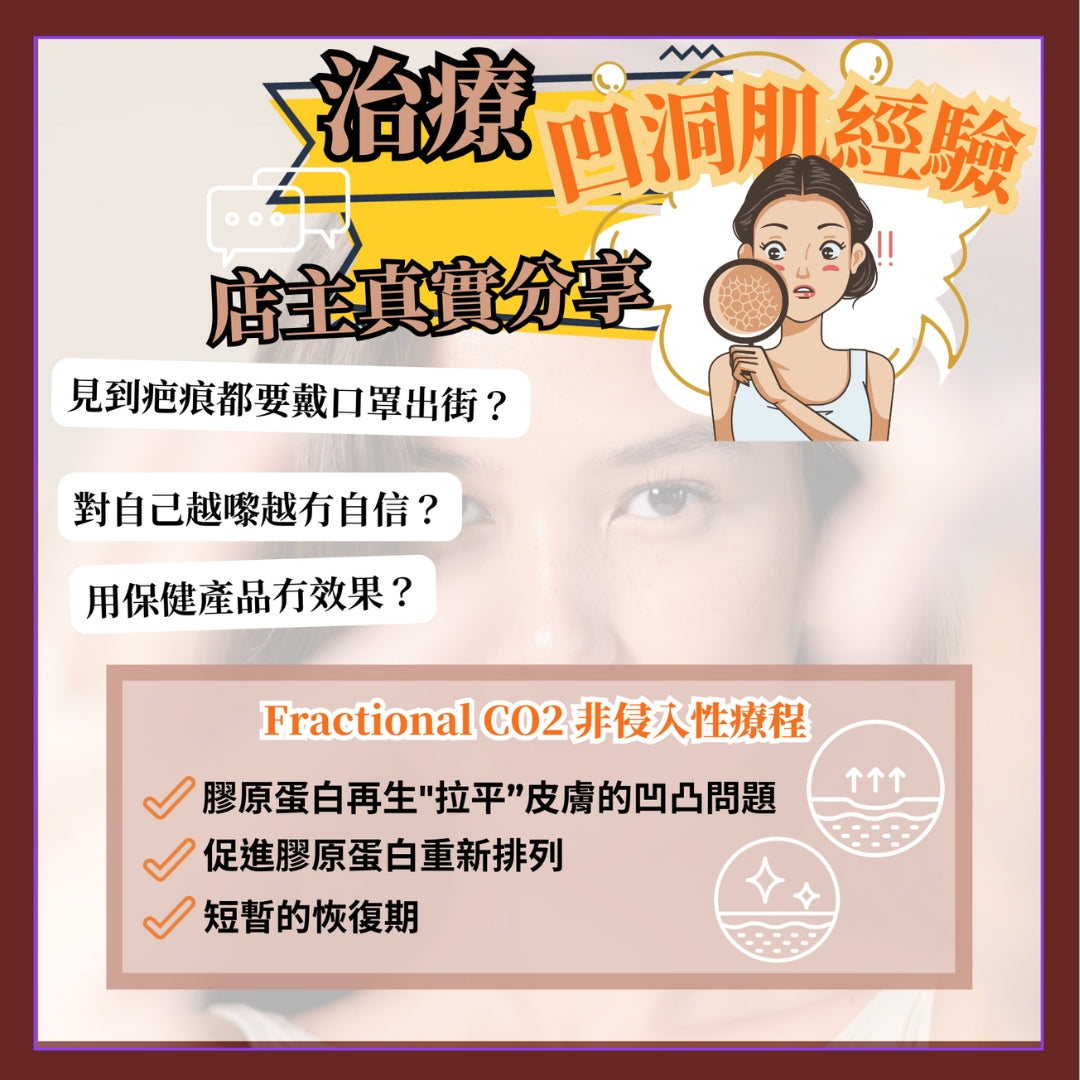 如果你哋都有暗瘡疤痕同凹凸洞嘅困擾而感到無助,真係好推薦你試下我哋嘅Fractional CO2 Laser療程!